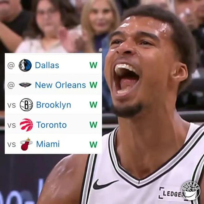 这是马刺队史第一次拿到开季五连胜
